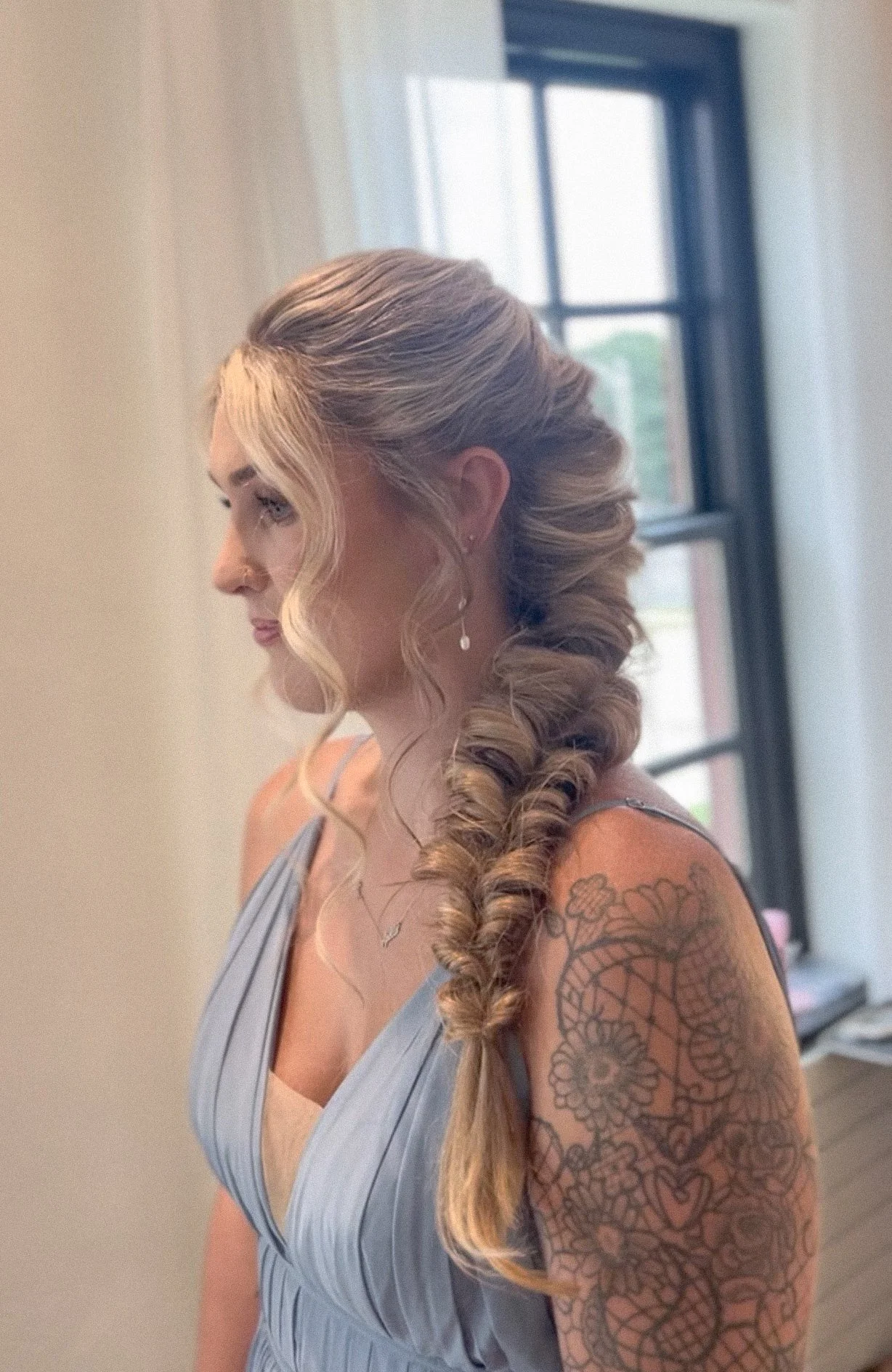 I’m here to make your dream hair come to life! I’ve been in the wedding industry for about 4 years now, but a licensed hairstylist for 6 years, going on 7. I’ve done well over 100 weddings and I don’t think I’ll ever quit! I love my job. Speaking of love, I am a recently engaged girl myself and I am over the moon excited to be in this era! If I’m not working, you can find me in the gym, thrifting, hanging out with my cat and two bunnies, or planning my wedding! My favorite part of my job is hearing the stories of how you met your love, no matter how simple or extravagant it may have been. I mean I wouldn’t have met my fiancé without Tinder! (There’s a lot more to that story, I’ll save that for when you’re in my chair :) ) Just a few more quick facts: I’m a twin, the oldest sibling of 5, a huge Justin Timberlake fan, I own a second business, and one time I took a spontaneous trip to Paris with my sister-in-law with 1 day notice for just the weekend. Ha! That’s a story for another time.